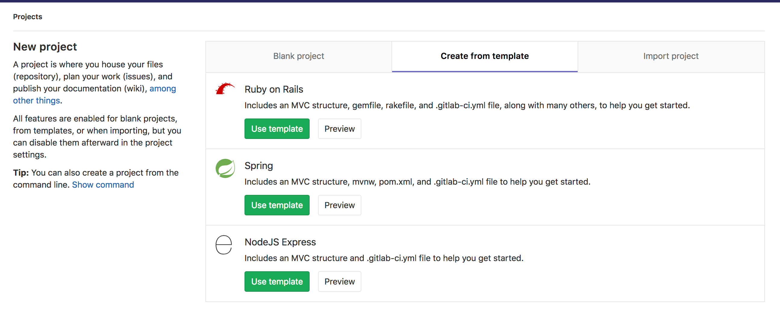 To create your Spring Boot application you can use the Spring template in GitLab when creating a new project: