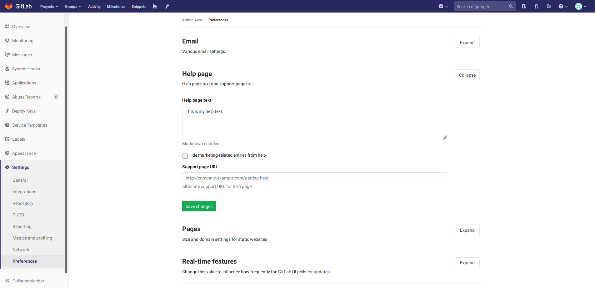 GitLab Help custom text